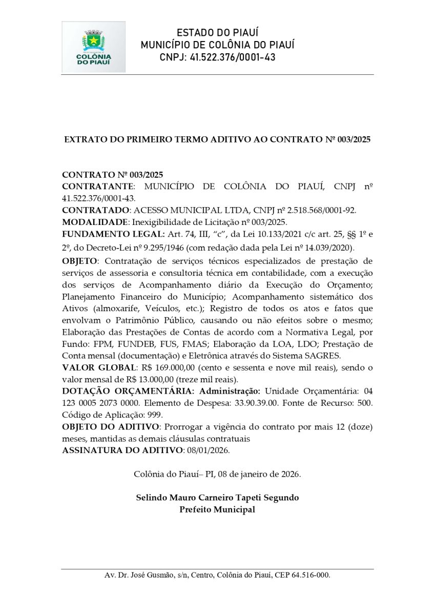 AVISO EXTRATO DO PRIMEIRO TERMO ADITIVO AO CONTRATO Nº 003/2025